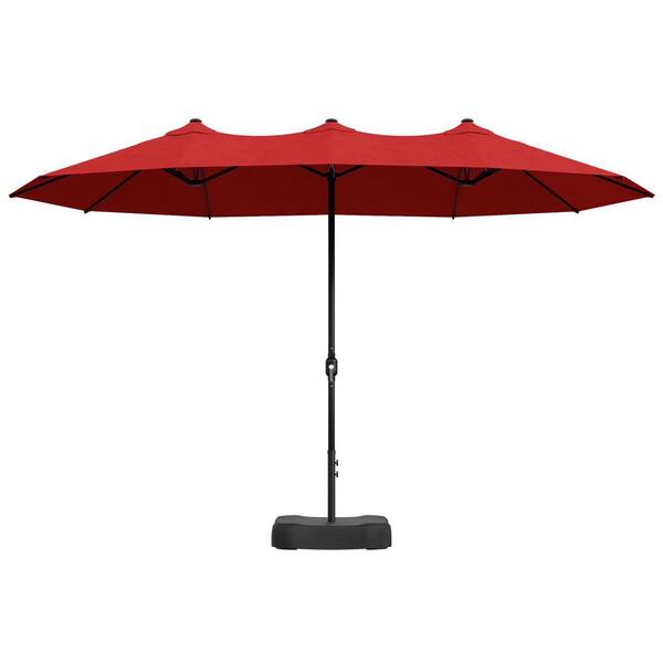 15 ft. Outdoor Market Patio Umbrella Double Sided Umbrella with Base in Red