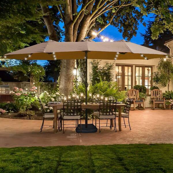 15 ft. Patio Umbrella in Brown, Large Patio Umbrella with Lights and Base for Poolside Lawn Backyard Terrace