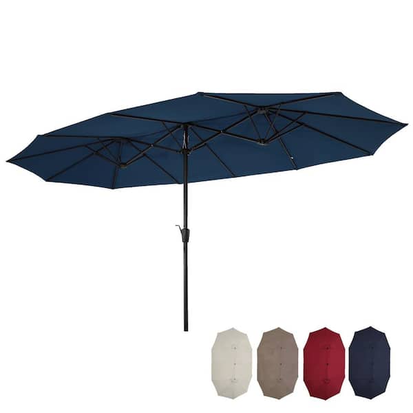 15 ft. x 9 ft. Market Patio Umbrella in Blue Large Double-Sided Rectangular Outdoor Twin Umbrella
