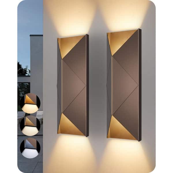 15 in. 2-LED Light Bronze IP65 Waterproof Outdoor Sconces Wall Lighting with 3 Color Temperatures ( 2-Pack )