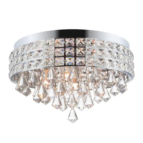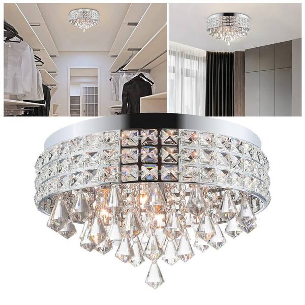 15 in. 4-Light Silver Modern Elegant Crystal Flush Mount Ceiling Light for Bedroom