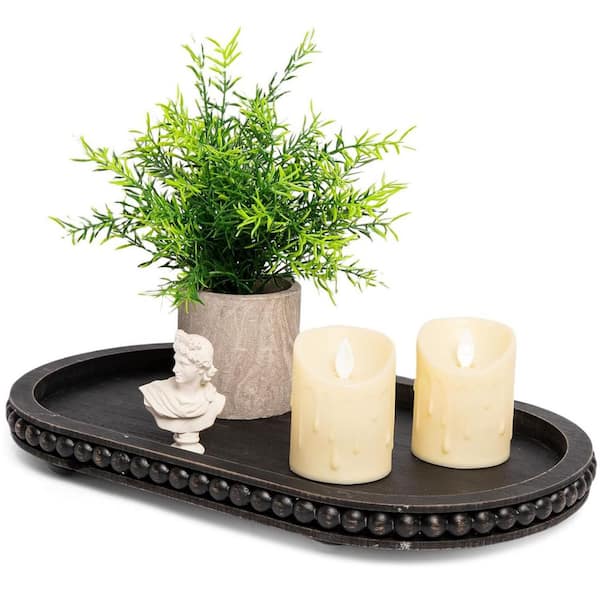 15 in. Black Oval Wood Decorative Tray (Set of 1)