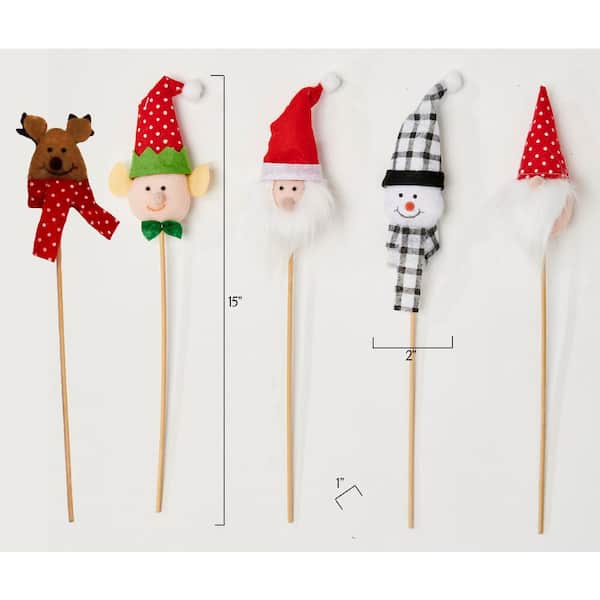 15 in. Christmas Holiday Ornament Figures on Pick (Set of 5)