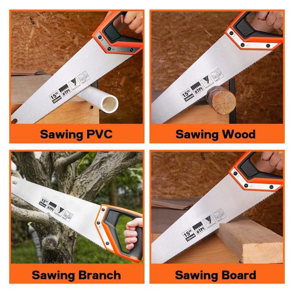 15 in. Fine-Cut Hand Saw with Ergonomic Non-Slip Handle for Sawing Trimming Gardening Woodworking Drywall
