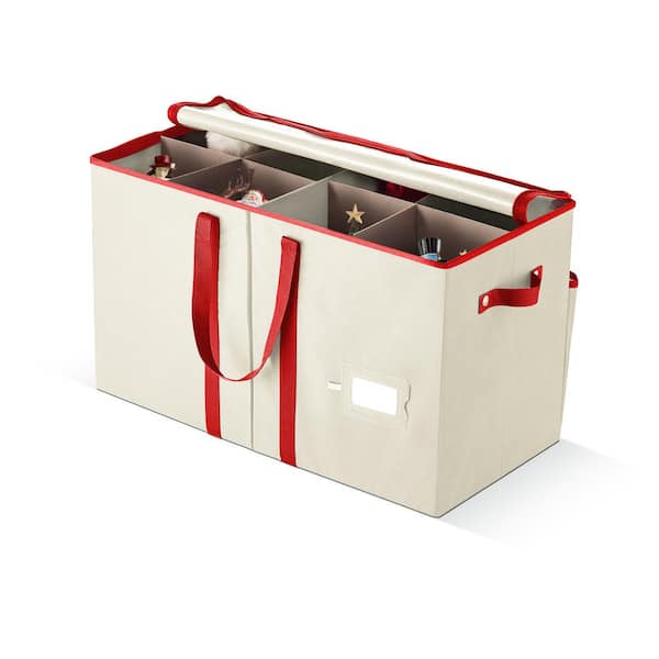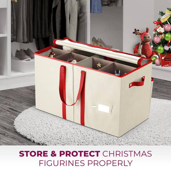 15 in. Off-White/Ivory Non-Woven Fabric Christmas Figurine Storage Box 8 Figurines