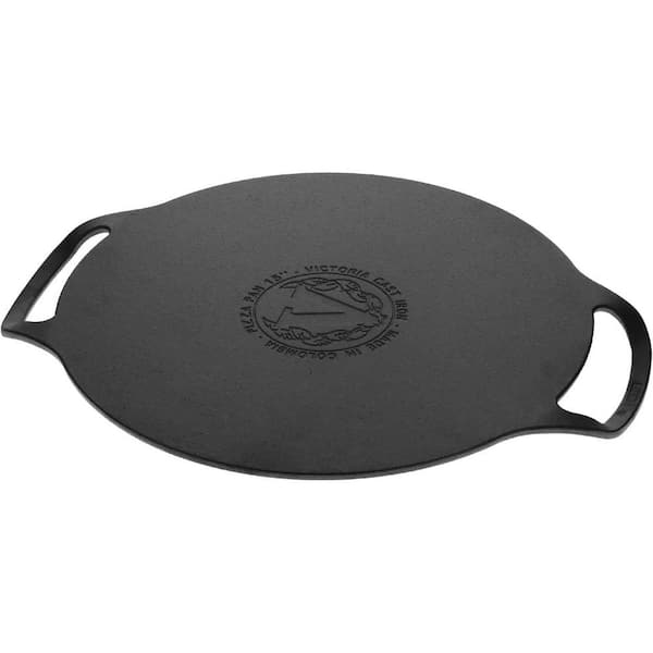 15 in. Pre-Seasoned with Flaxseed Oil Cast Iron Durable Pizza Pan in Black Easy to Use with Ergonomic Loop Handles