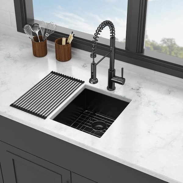 15 in. Undermount Single Bowl 18 Gauge Gunmetal Black Stainless Steel Kitchen Sink with Bottom Grids
