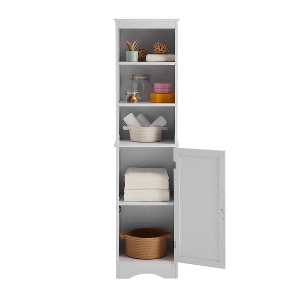 15 in. W x 11-4/5 in. D x 59-4/5 in. H MDF White Freestanding Linen Cabinet with Open Shelf and Enclosed Cabinet