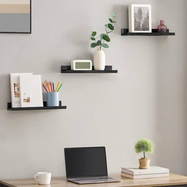15 in. W x 3.9 in. D Black Plastic Decorative Wall Shelf (Set of 2)