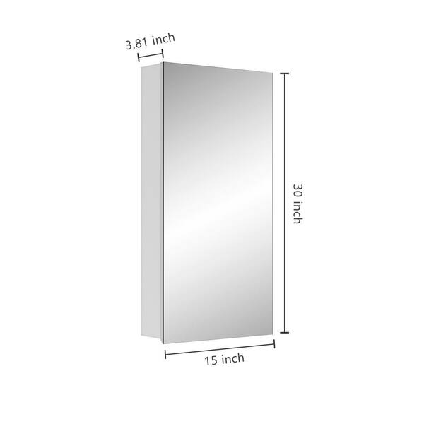 15 in. W x 30 in. H Rectangular Wood Medicine Cabinet with Mirror, Bathroom Cabinet Wall Mounted with Door Beveled Edges