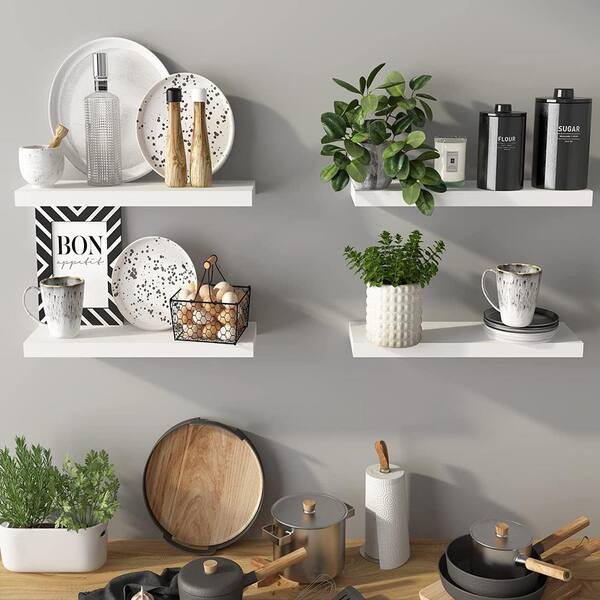 15 in. W x 7.75 in. D White Decorative Wall Shelf, Wall Mounted Wooden Shelves