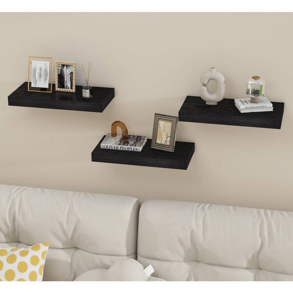 15 in. W x 7.9 in. D Black Floating Shelves Decorative Wall Shelf (Set of 3)
