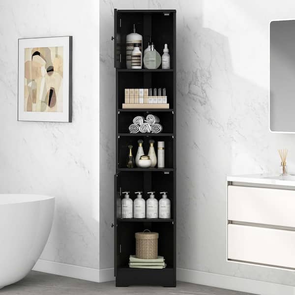 15 in. W x 9 in. D x 70 in. H Black Linen Cabinet, Multi-Functional Corner Cabinet Tall Bathroom Storage Cabinet