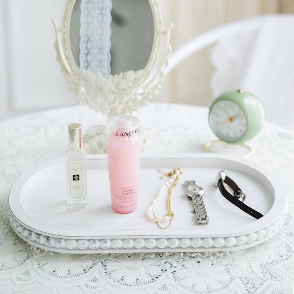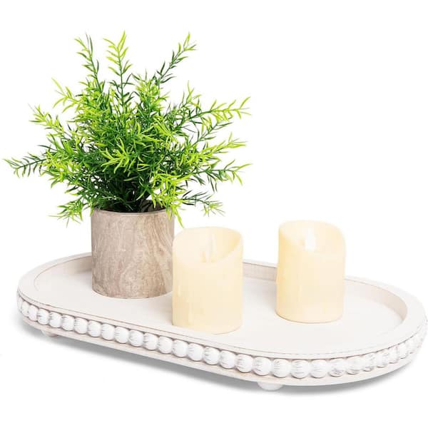 15 in. White Oval Wood Decorative Tray (Set of 1)