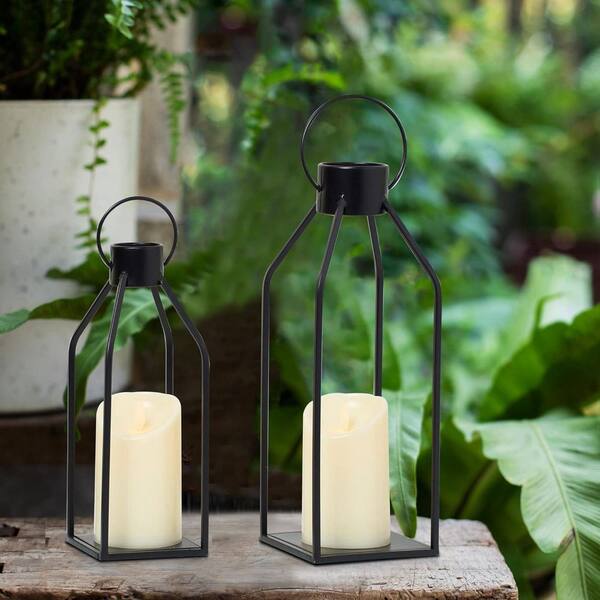 15 in. x 4.5 in. Black Metal Farmhouse Lantern with LED Candle, Set of 2