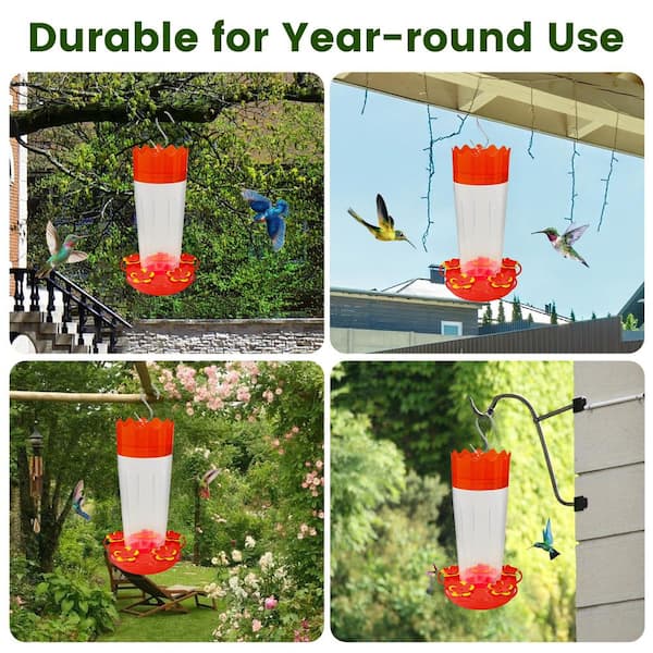 15 oz. Red Hummingbird Feeder with 5 Feeding Ports and Perches, Built-in Ant Moat, Hanging Ant and Bee Proof, 2-Pack