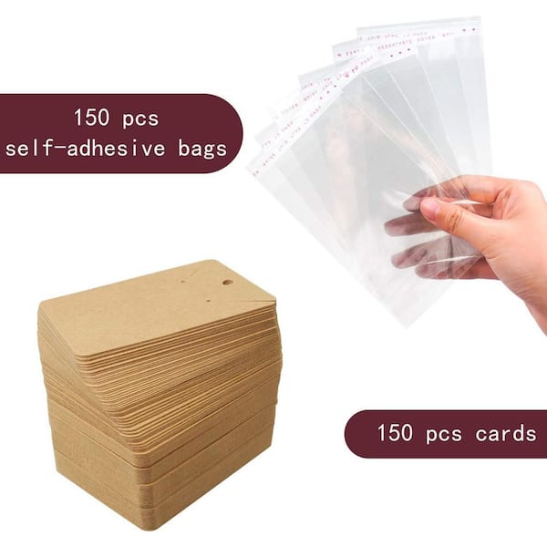 150 Earring and Necklace Display Cards with Self-Seal Bags Kraft Paper Tags for DIY Jewelry Display and Storage