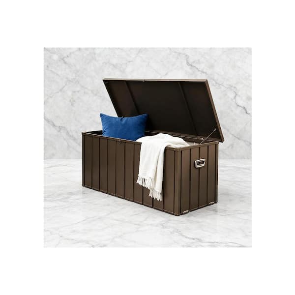 150 Gal. Brown Large Deck Box, Outdoor Storage Chests, Patio Storage Box: with Lockable, Water Resistant & UV Protection