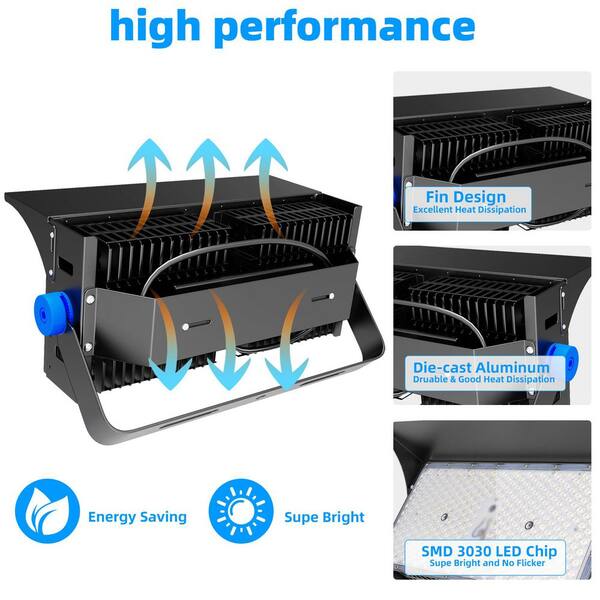 1500-Watt Equivalent 39000 Lumens 120° Black Integrated 300W LED Flood Light, ETL Listed (2-Pack)