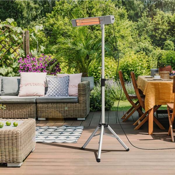 1500-Watt White Electric Patio Heater Infrared Carbon Fiber Wall Heater with Tripod Mount and Remote Indoor/Outdoor Use