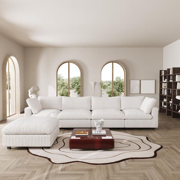 157.48 in. Square Arm 6-piece Rabbit Velvet Plush U-Shaped Free Combination Sectional Sofa with Ottoman in White
