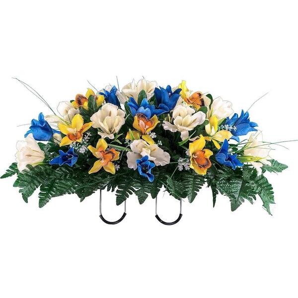 15in. Blue Yellow Outdoor Artificial Tulips Flowers, Outdoor Grave Decorations.