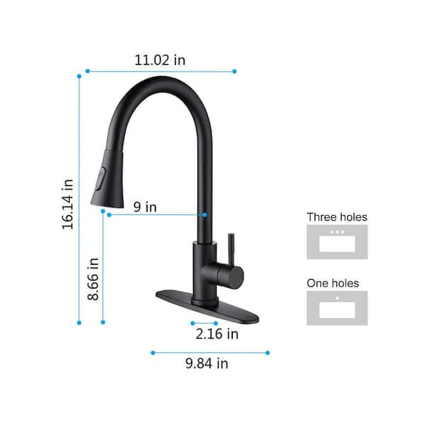16.14 in H Kitchen Faucet with Pull Out Sprayer in Matte Black