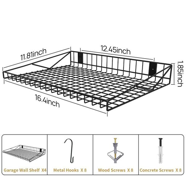 16.4 in. W x 11.8 in. D Black Metal Floating Shelves, Decorative Wall Shelf (Set of 4)