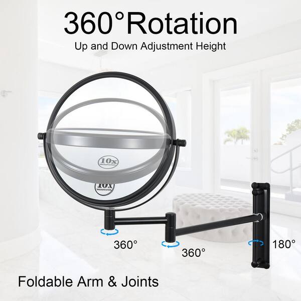 16.5 in. L x 13 in. W Adjustable Heigh Round Wall Mount Bi-View 10X/1X Magnification Beauty Makeup Mirror in Black