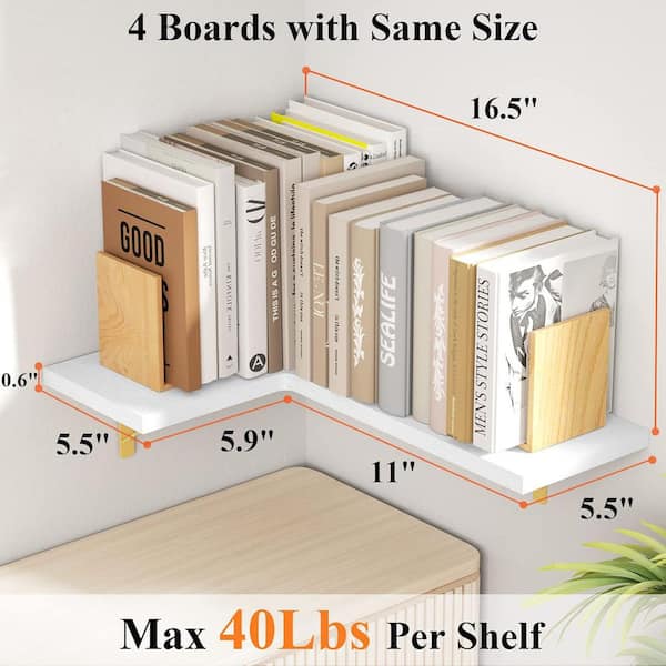 16.5 in. W x 11.4 in. D White Dark Brown Corner Shelf Decorative Wall Shelf, Set of 4