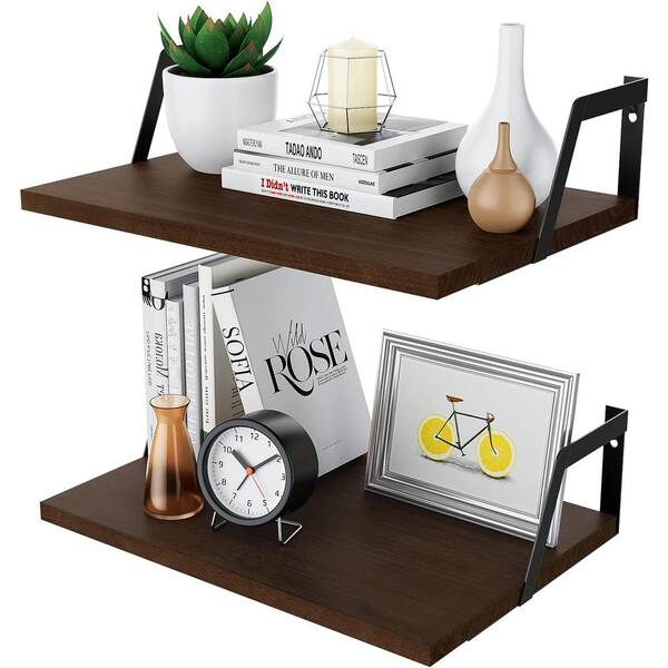 16.5 in. W x 11.8 in. D Decorative Wall Shelf, Dark Walnut Floating Shelves Wall Mounted Set of 2