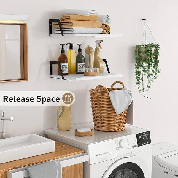 16.5 in. W x 11.8 in. D Washed White Wood Composite Decorative Wall Shelf, Floating Shelves Wall Mounted Set of 2