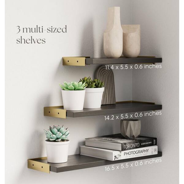 16.5 in. W x 5.5 in. D Black Gold Rustic Wood Decorative Wall Shelf Set of 4