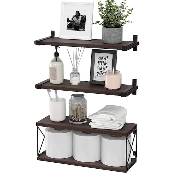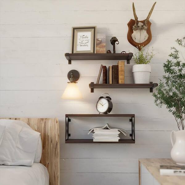 16.5 in. W x 5.9 in. D Rustic Brown Wood Decorative Wall Shelf Floating Shelves