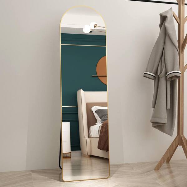 16.5 in. W x 59.8 in. H Arched Aluminium Alloy Metal Framed Wall Bathroom Vanity Mirror in Golden