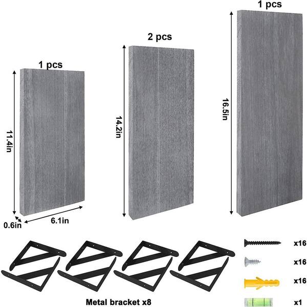16.5 in. W x 6.1 in. H x 4.3 in. D Wood Rectangular Shelf in Gray 4 Sets Adjustable Shelves