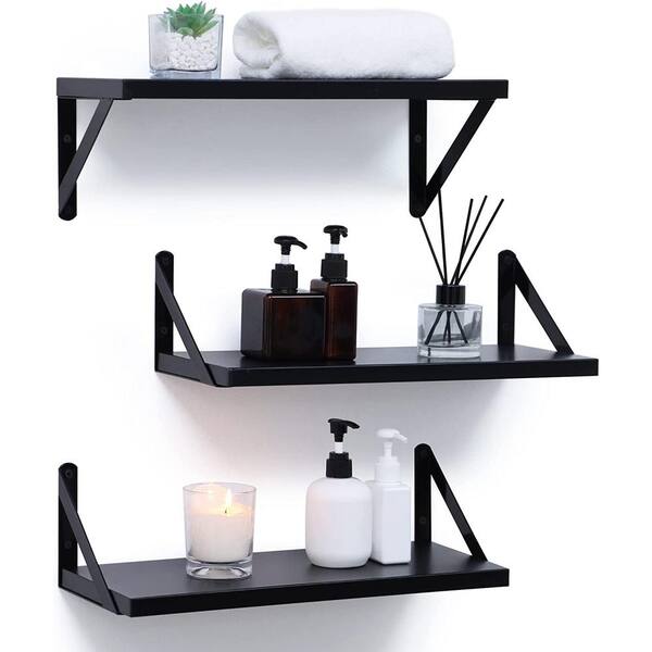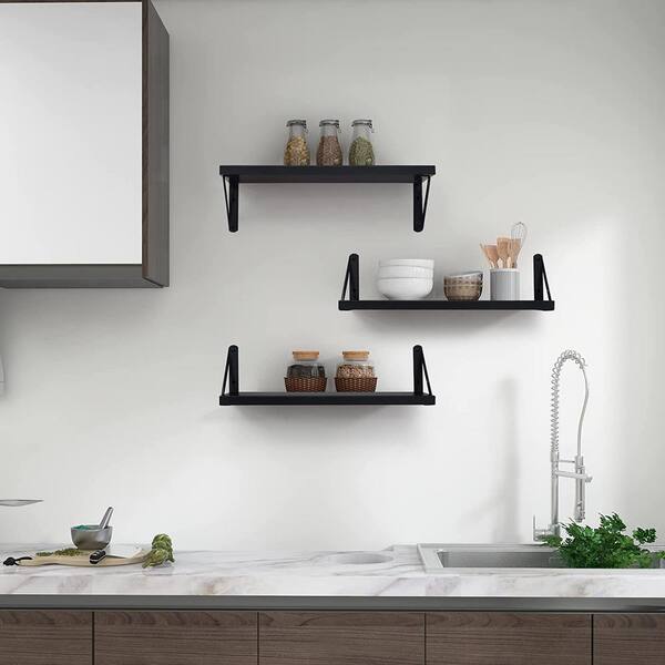 16.5 in. W x 6.7 in. D Black Wood Composite Decorative Wall Shelf Floating Shelves Set of 3