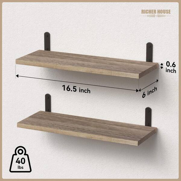 16.5 in. W x 6 in. D Charcoal Roasted Paulownia Wood Solid Wood Floating Decorative Wall Shelf (Set of 2)