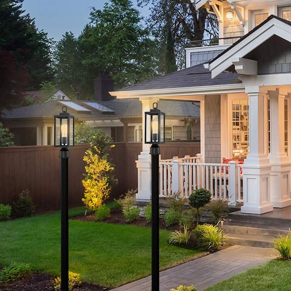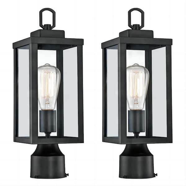16.6in.2 Lights Black Metal Hardwired Outdoor Weather Resistant Post Light with No Bulbs Included(2-Pack)