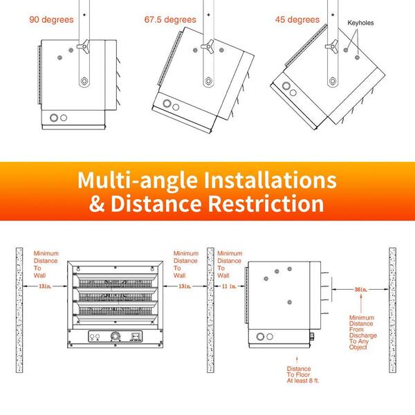 16.7 in. 17050 BTU Hardwired Electric Fan-Forced Industrial Heater Wall/Ceiling Mounted Build-in Digital Thermostat