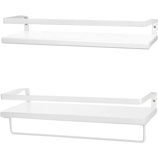 16.75 in. W x 5.5 in. D White Wood Decorative Wall Shelf, Wall Shelves with Towel Bar, (Set of 2)