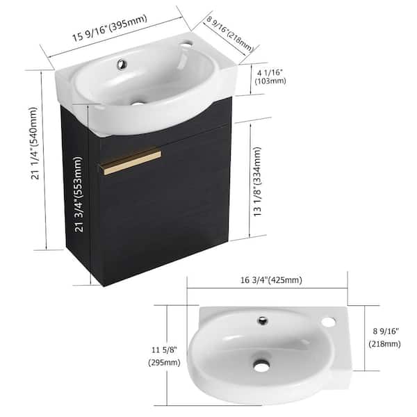16.80 in. W x 11.60 in. D x 21.30 Single Sink Wall Mounted Bath Vanity in Black Chestnut with White Ceramic Top