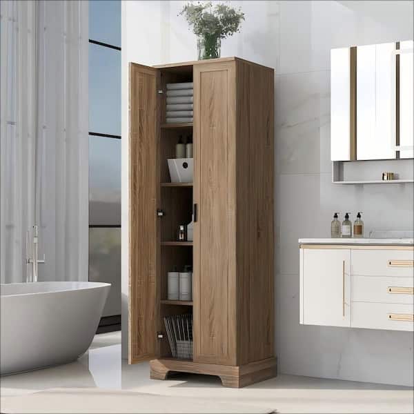 16. 9 in. W x 23. 3 in. D x 71. 2 in. H in Brown Wood Bath Storage Cabinet with Adjustable Shelf, 2-Doors