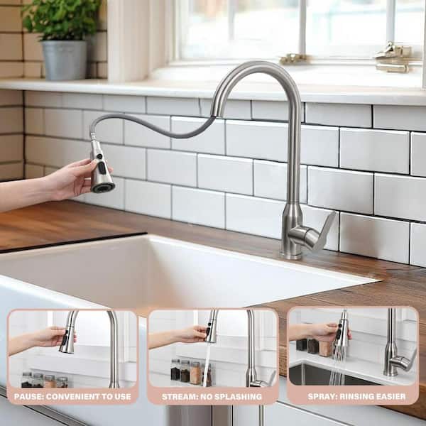 16.93 in. Single Handle 360° Spout Swivel Pull Down Sprayer Kitchen Faucet with Advanced Spray in Brushed Nickel