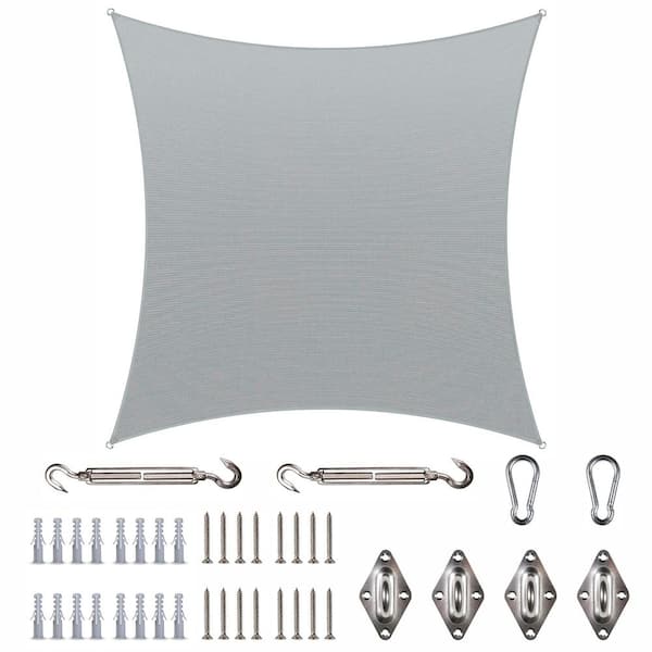 16 ft. x 16 ft. Gray Square Sun Shade Sail Canopy with Hardware Kit