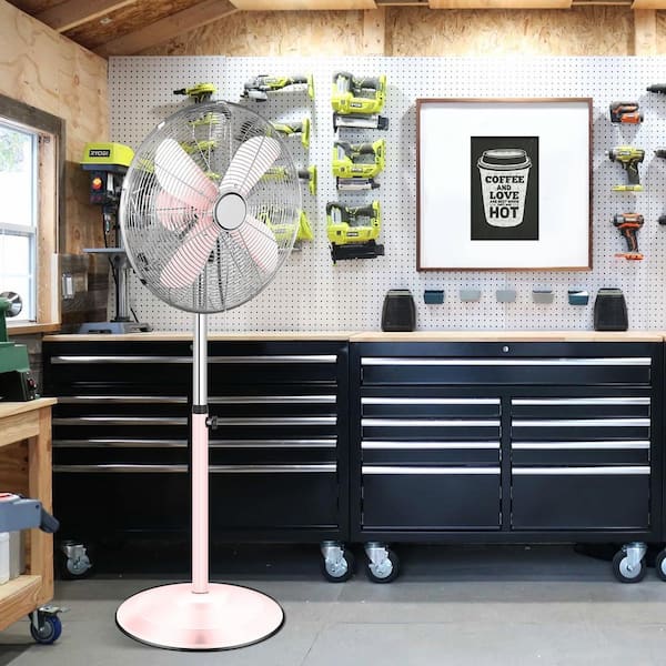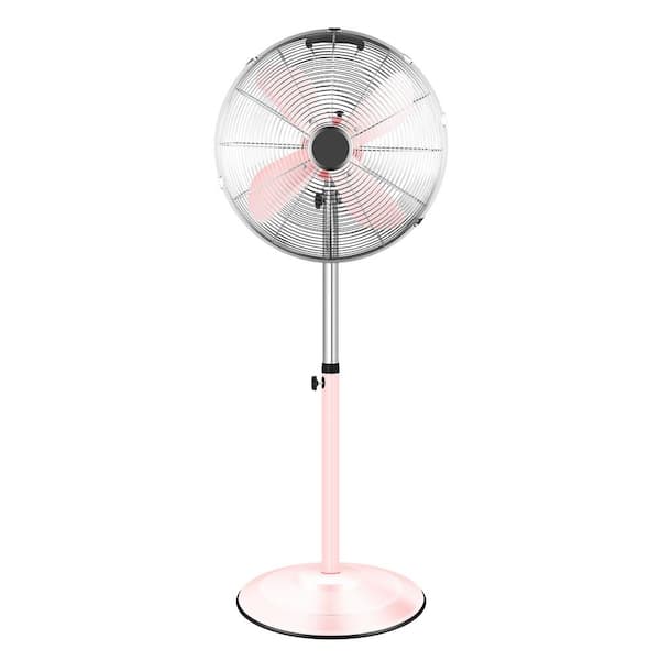 16 in. 3 Fan Speeds Pedistal Fan in Pink with Adjustable Heights