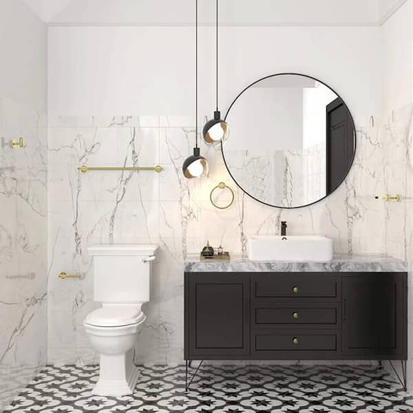16 in. Bathroom Set with Toilet Paper Holder, Towel Bar, Towel Ring and Robe Hook in Gold