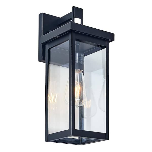 16 in. Black Outdoor Hardwired Wall Lantern Sconce with No Bulbs Included