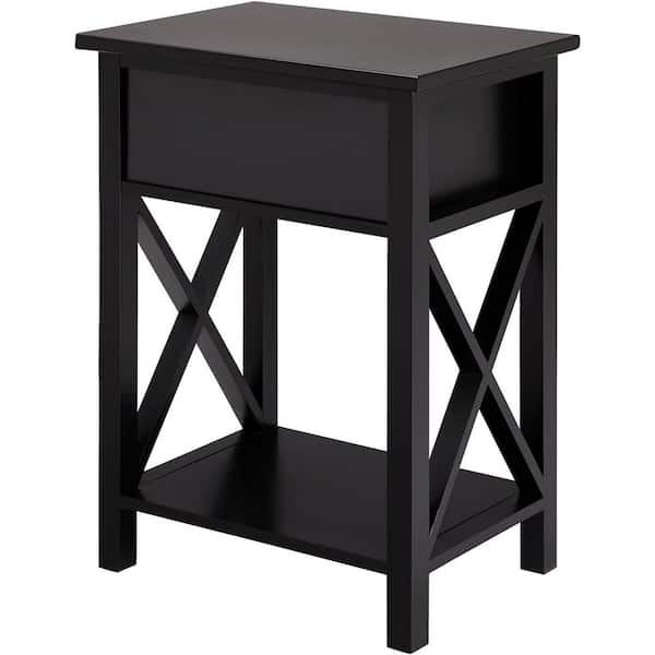 16 in. Black Wooden End Tables - (Set of 2) Modern Minimalist Nightstands with Storage