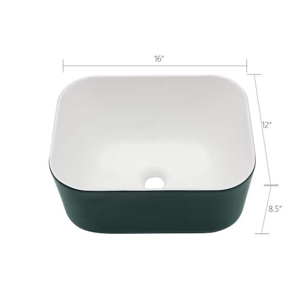 16 in. L x 12 in. W x 8.5 in. H Green Ceramic Rectangular Bathroom Vessel Sink
